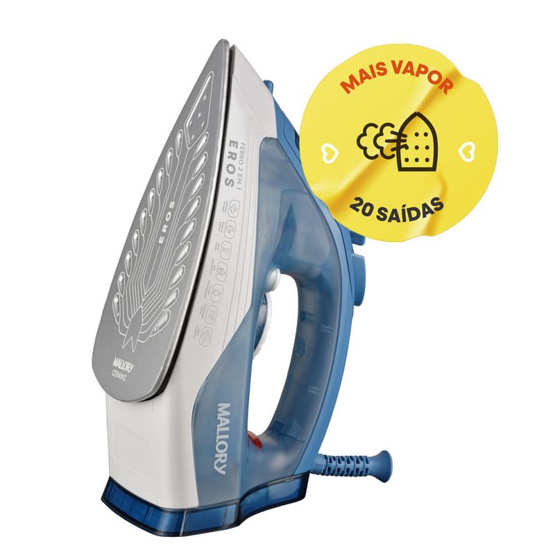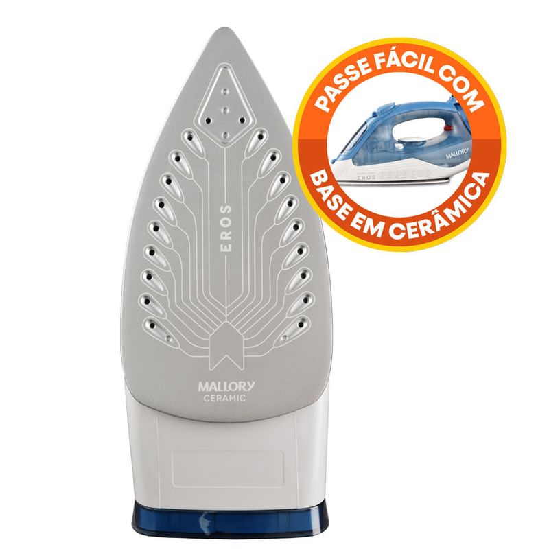 O Ferro a Vapor Eros da Mallory é uma combinação perfeita de tecnologia, praticidade e desempenho para um engomar impecável. Equipado com o exclusivo Ceramic System , sua base cerâmica superdeslizante e resistente proporciona um deslizamento suave sobre os tecidos, garantindo máxima eficiência e durabilidade. Além disso, conta com uma base de botões de salvamento , projetados para evitar danos a detalhes delicados das roupas.