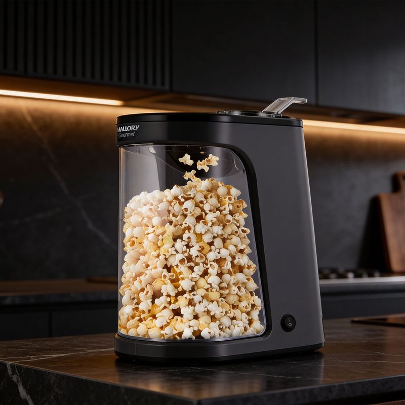 Ideal para momentos em família, sessões de cinema em casa ou lanches rápidos, a Pipoqueira Gourmet une eficiência, segurança e estilo, trazendo a nova geração de pipoqueiras para transformar sua experiência na hora de preparar pipoca.